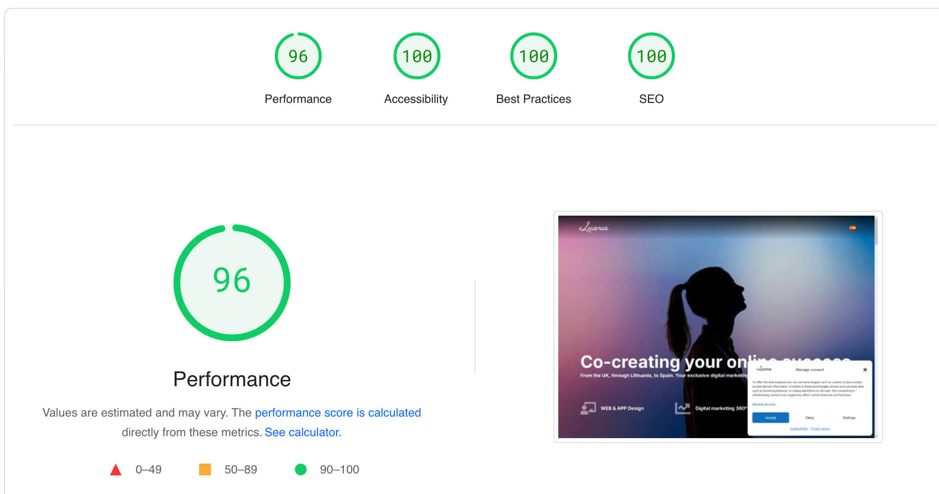 After website optimization and SEO work Google Speed Insight gave a very high score.